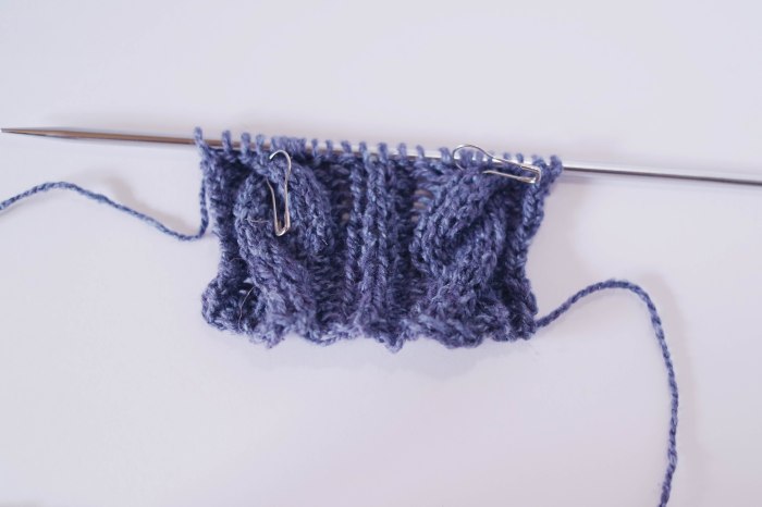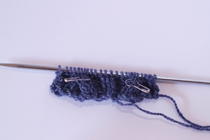 You can do the same thing with cable patterns. Here I placed pins in the first cable row of the pattern.