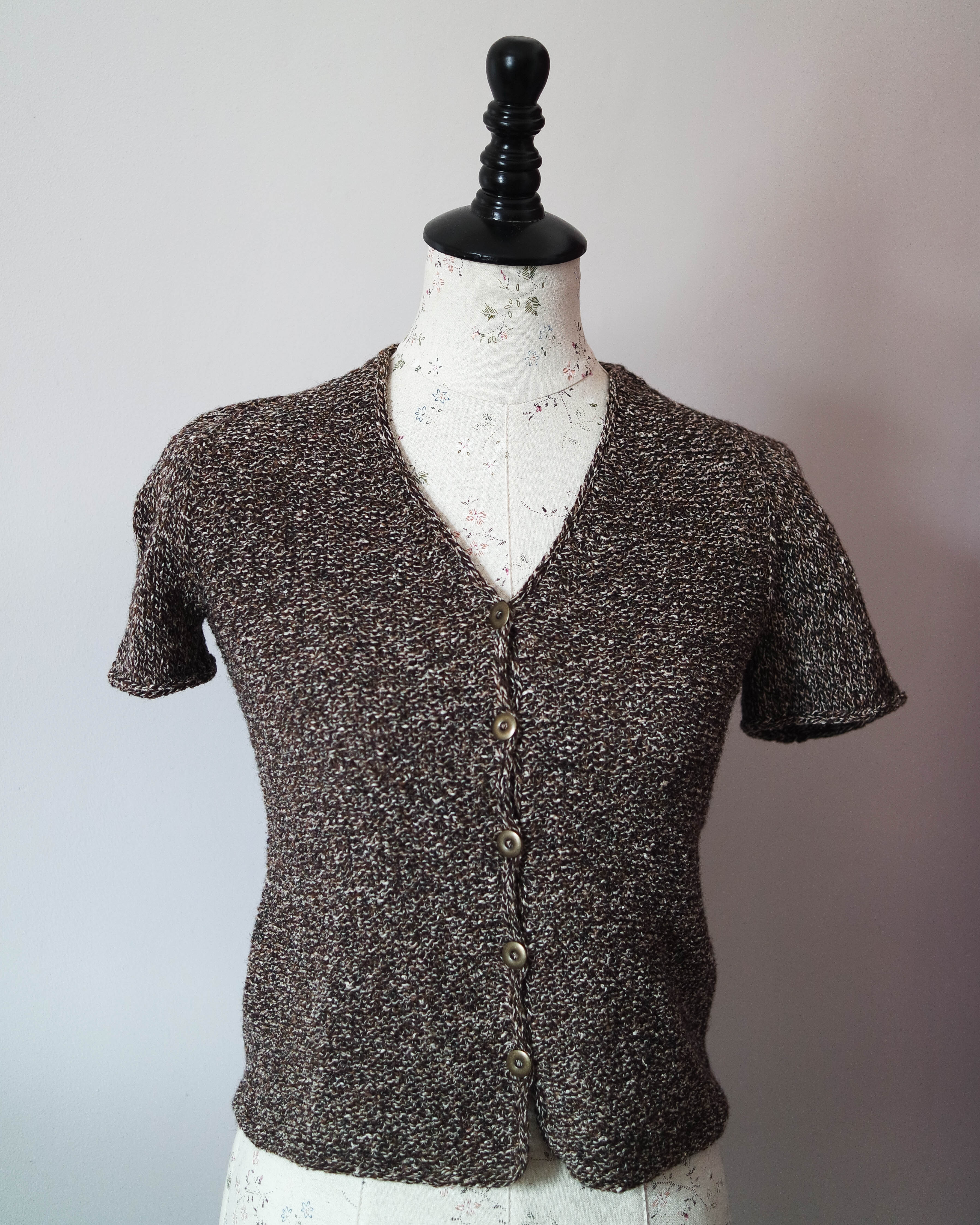 The cardigan is a little small, and I knew it wasn’t quite right, so I had a hard time finishing it when I knew it wouldn’t fit over a long-sleeved shirt like a cardigan should. With short sleeves it becomes a summer cardigan and it works over a light summer dress or tank top. Problem solved! I did start writing a pattern, but it will take a bit more work and another sample to finish it.