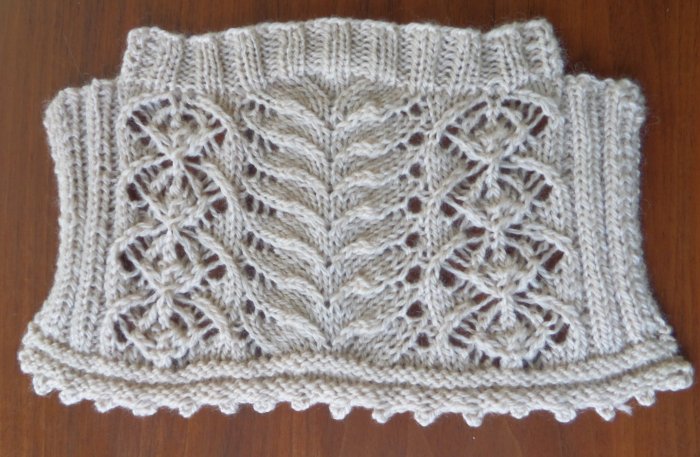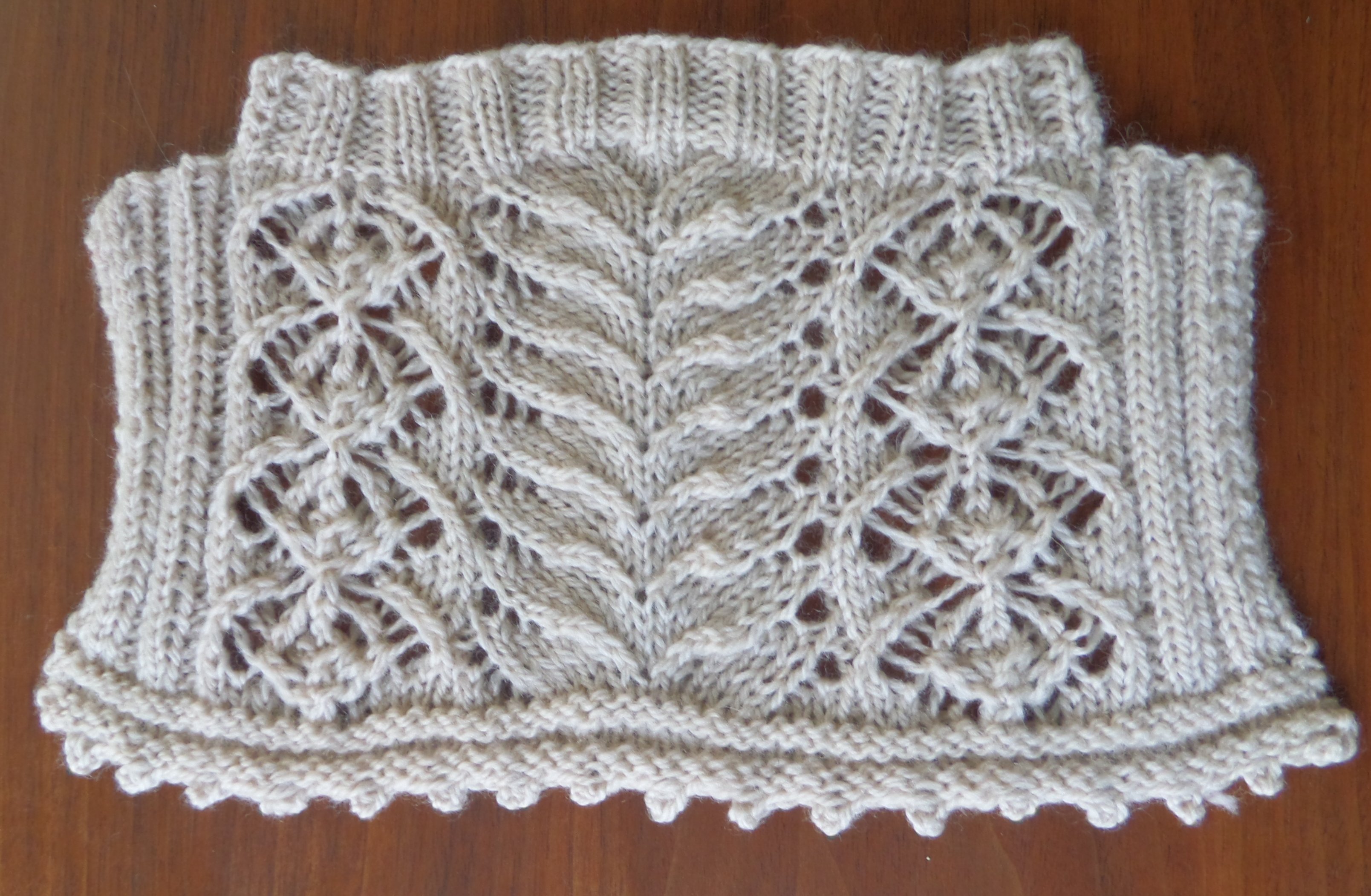 Lisa Shroyer, the editor at the time, discussed a few different yarn options with me and we settled on Dale of Norway Heilo, a sport weight 100% wool yarn in a natural oatmeal color. The yarn was a little thicker than the yarn I had used in my swatch, causing the lace to have more of a textural quality and creating a denser fabric than I had imagined. The design still turned out beautifully and I was really pleased with the result!