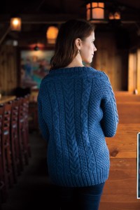 The sweater starts with a cable at the back neck which spans the saddle shoulders and continues down the sleeves. Shoulder shaping is worked into the saddles to keep the drop shoulders from becoming too voluminous or droopy.