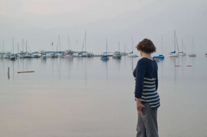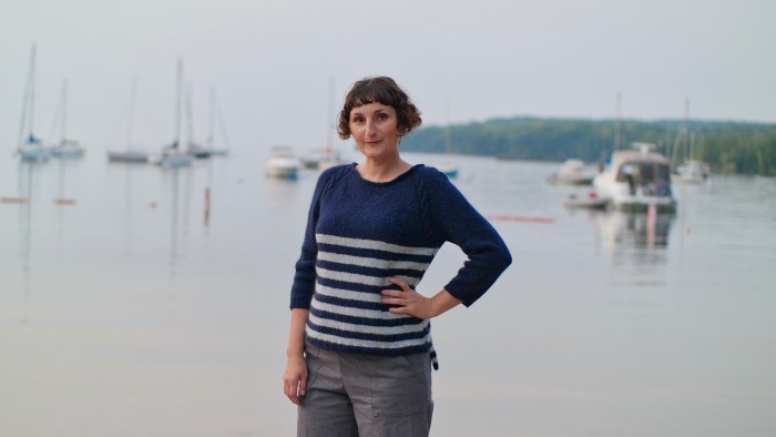 The Orthagon Wrapper is a lot of knitting, but it’s mostly meditative garter stitch. Even though the colors are changed frequently for the stripes, there are not a lot of ends to weave in because the color not in use is carried up the side of the work and hidden inside the i-cord edging. Working each half of the shawl separately keeps the work a manageable size.