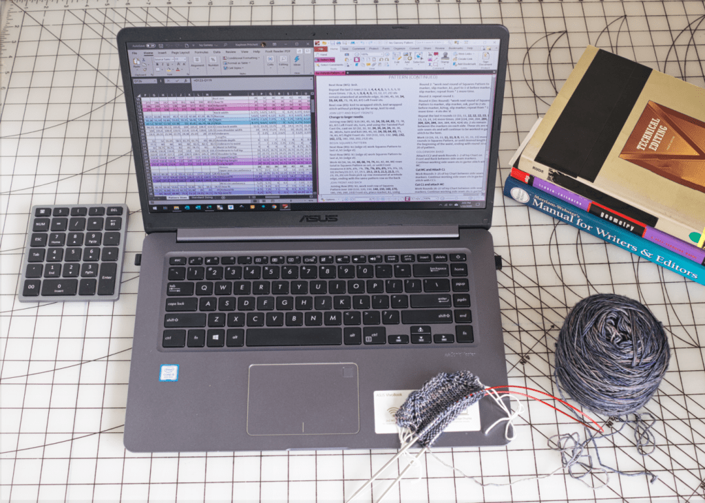 For five years I worked at a local yarn store providing pattern support and teaching knitting techniques. After leaving the yarn store, I decided to pursue tech editing as a vocation and took Joeli Kelly’s Learn To Tech Edit Course as well as Edie Eckman’s Pattern Writing For Knitters Craftsy Class.